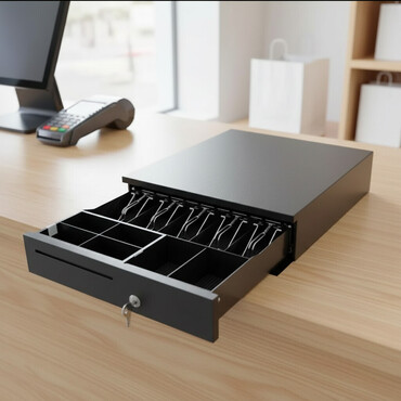 Денежный ящик Posiflex - Модель: Posiflex (кассовый денежный ящик) - Материал и цвет: прочный металлический корпус, черный - Организация купюр и монет: 4 секции для банкнот с прижимами + множество...