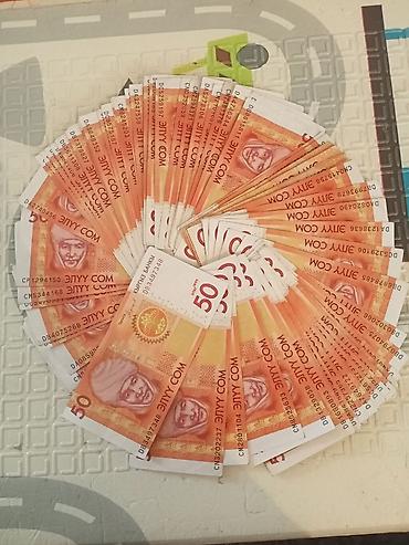 - На фото показан вариант с большим числом купюр 50 сом, уложенных веером и собранных в букет.