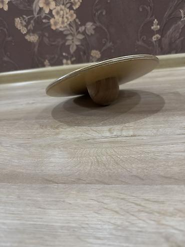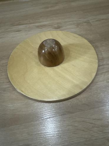 - Конструкция: круглая платформа из фанеры/дерева, снизу — полусферическая опора из массива.
