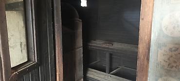- Материал: стены и потолок из вагонки/доски, двери деревянные.