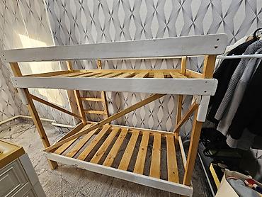 - Конструкция: две спальные зоны с реечными основаниями под матрасы, верхний ярус с защитными бортиками по периметру.