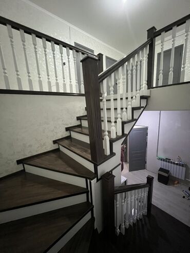 Стильная деревянная лестница, выполненная в классическом стиле, идеально впишется в интерьер частного дома или двухуровневой квартиры. Ступени и перила из тёмного дерева контрастируют с белыми подс...