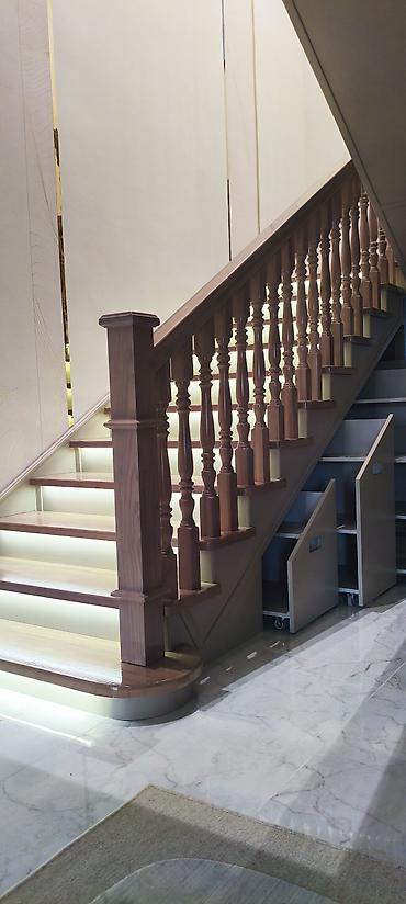 - Возможности интеграции хранения под лестницей: выкатные ящики на колесах/направляющих.
