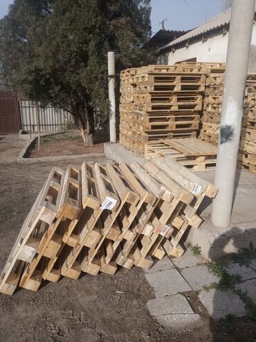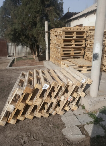 Деревянные поддоны (паллеты) - Материал: массив дерева (доска/брус). - Конструкция: классические двухъярусные паллеты на брусках. - Подходят для: хранения и перевозки грузов, складских работ, обус...