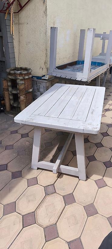 - Конструкция: прочные столешницы из нескольких широких планок; устойчивые ножки-тrestle и прямые квадратные; усилители/распорки между опорами.