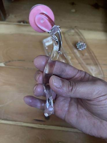 - Рекомендации по применению: очистить кожу и инструмент, аккуратно прокатывать валик по участку вертикально, горизонтально и по диагонали без излишнего нажима; после процедуры нанести уходовое средство. Обязательно дезинфицировать перед и после каждого использования и не делиться инструментом.