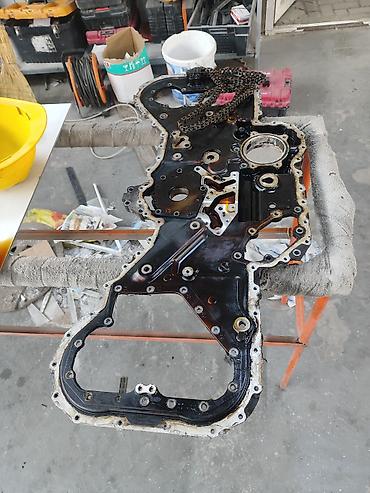 - Передняя крышка ГРМ с каналами, посадочными под насос/натяжители; цепи ГРМ.