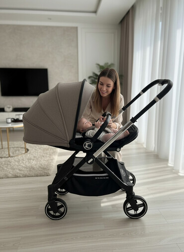Детская прогулочная коляска с автокреслом-переноской (travel‑system) Особенности: - Универсальная рама с поворотной ручкой; возможность установки блока лицом к маме/к дороге. - Сиденье прогулочног...