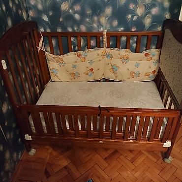Детская деревянная кроватка с маятниковым механизмом и выдвижным