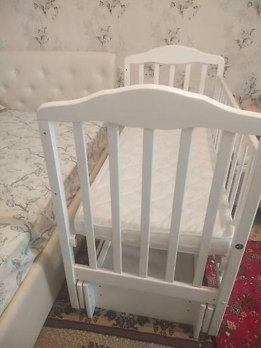 Детская кроватка из массива дерева, цвет белый.