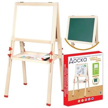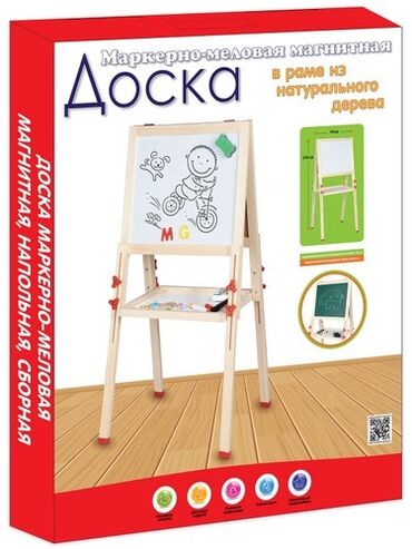 Игрушки Оптом и розницу - Настольная/напольная складная мольберта на деревянной раме. - Одна сторона — белая магнитно-маркерная поверхность для рисования фломастером и крепления магнитов. - В комп...