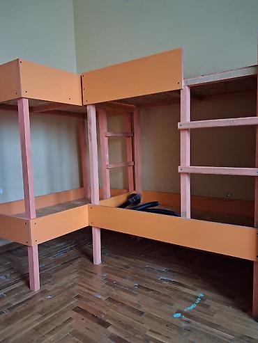 Двухъярусная кровать для детей/подростков для садиков - Конструкция: два спальных места одно над другим, вертикальная лестница спереди с металлическими перекладинами/деревянными ступенями (в завис...
