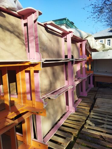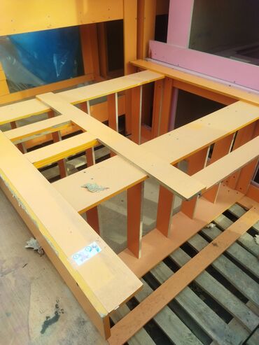 - Материал: ЛДСП, окрашенные панели. Цвета: оранжевый и розовый (разные модули).
