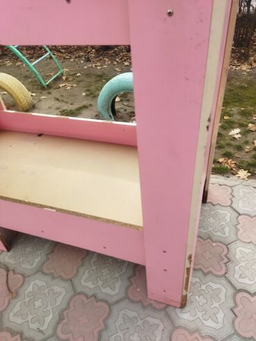 Двухъярусная детская кровать, Б/у, ЛДСП, цвет - Розовый