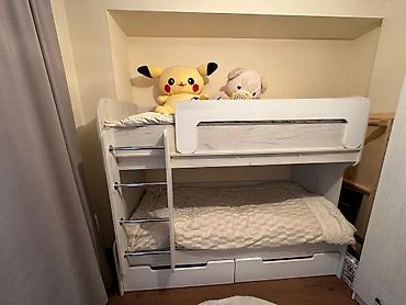 В комплекте: каркас кровати, лестница, два нижних ящика, без матрасов.