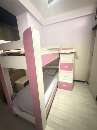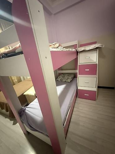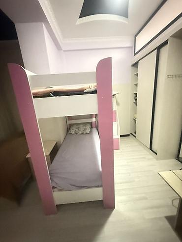 Область Иссык-Куль город Балыкчы. Двухъярусная детская кровать цвета розовый с белыми вставками. - Материал: ЛДСП/МДФ, металлические перекладины. - Компоновка: два спальных места одно над другим. ...