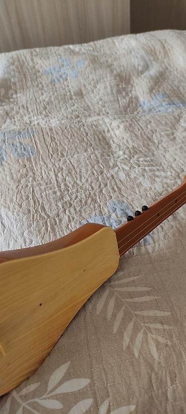 - Компактная струнная игрушка с корпусом в форме комуза/балалайки.