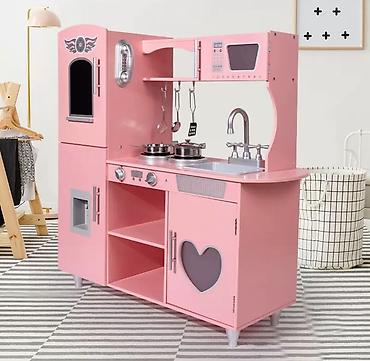 Предзаказ!!! Детская игровая кухня из дерева, розовая - Размеры: 88