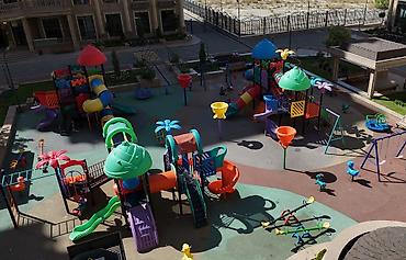 - Комплексные решения для дворов, парков, ЖК, школ и детсадов: многоуровневые игровые комплексы с башнями, мостиками и тоннелями; закрытые и открытые горки разной высоты; качели, балансиры, карусели; скалодромы и сеточные лазалки; спортивные зоны воркаут.