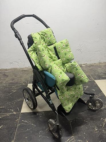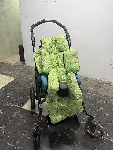 - Установлен мягкий позиционирующий вкладыш (чехлы с принтом «авокадо»): поддержка головы, туловища и ног, боковые валики, абдукторный валик (межножный ограничитель).