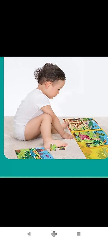 - Формат: картонная книжка‑раскладушка с твердыми страницами; на каждой странице встроенный пазл.
