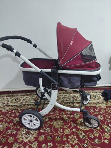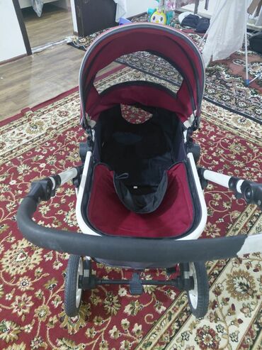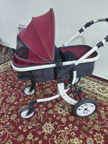 Прогулочная коляска-трансформер 2-в-1, бордового цвета. В отличном состоянии. Особенности: - Универсальная система: люлька для новорождённого и прогулочный блок с полноценным спальным местом. - Пр...