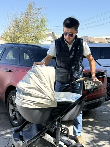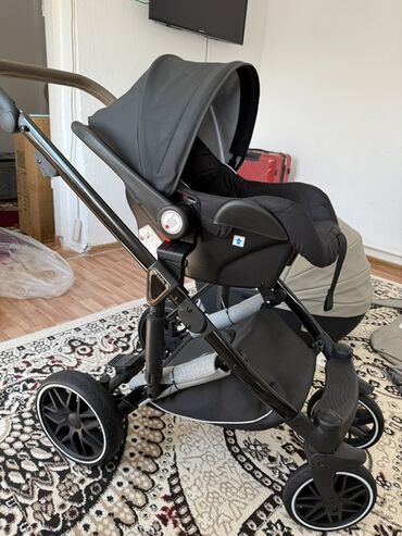 Коляска менен кошо кровать, оюнчуктарды бекер берем,аябай ынгайлуу, женил коляска, comfortbaby ден 39 000с алганбыз. Торг.есть Коляска-трансформер 2-в-1 (люлька + прогулочный блок), цвет графито...