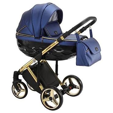 Цвет: темно-синий с элементами золотого/чёрного на раме и колёсах.