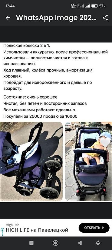 Срочно в связи с выездом продаем Детскую коляску 2 в 1. Покупали за 50000 сом отдаем за 40000 сом.. . - Комплектация: прогулочный блок, люлька для новорождённого, сумка для мамы, накидка на ножки/ч...