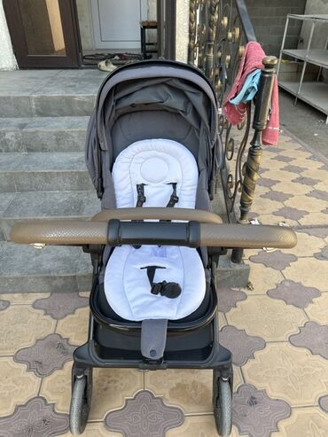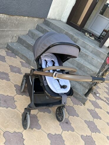 Детская коляска 2 в 1 (люлька + прогулочный блок), цвет теплый коричневый с черной рамой. Основные особенности: - Универсальная система: быстрая смена люльки на прогулочный блок на одном шасси. - ...Вход•Регистрация