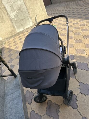Универсальная детская коляска 2-в-1 (люлька + прогулочный блок), цвет хаки/оливковый. Основные особенности: - Шасси из легкого металла с лаконичным дизайном, центральный замок фиксации блока. - Бо...