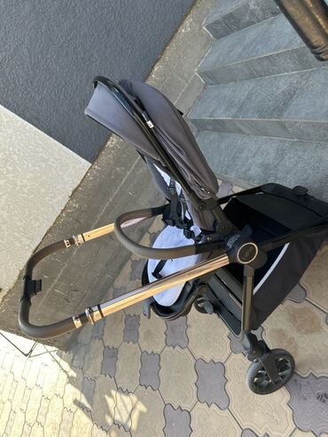 Прогулочная коляска с реверсивным прогулочным блоком - Цвет: черный с золотистыми/бронзовыми акцентами рамы и дисков. - Рама: легкая, прочная, с амортизаторами на стойках для плавного хода. - Коле...