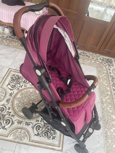 Лёгкая прогулочная коляска-трость - Компактная складная конструкция — удобна для перевозки и хранения. - Плотный текстиль глубокого сливового цвета. - Капюшон с вентиляционным окошком из сетки для...