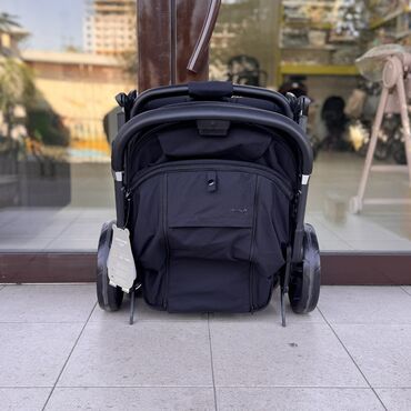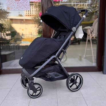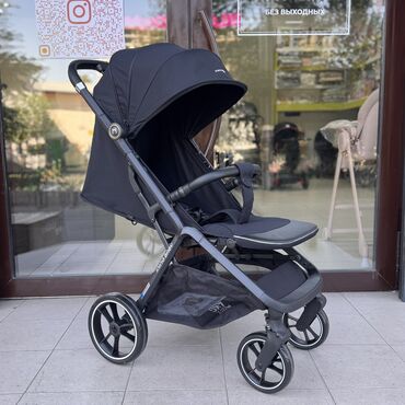 Компактная прогулочная коляска черного цвета с черной рамой. Оснащена регулируемым капюшоном и чехлом для ног, обеспечивающим защиту от непогоды. Имеется вместительная корзина для покупок. Легко складывается для удобства хранения и транспортировки. Подходит для прогулок по городу и путешествий.