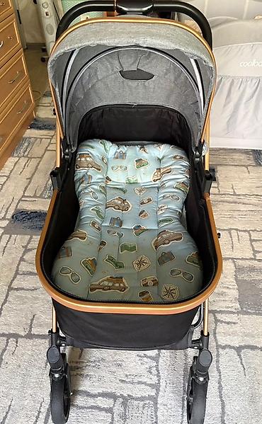 - Просторная люлька с мягким матрасиком-вкладышем с принтом (очки, машины, компас, чемоданы).