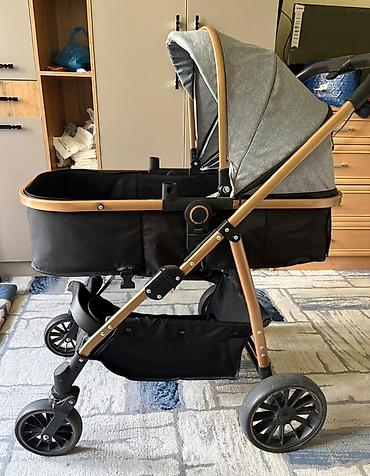 Почти новая!!!! Ценасын дагы суйлошобуз!! Прогулочная коляска компактного класса - Лёгкая рама с золотистыми стойками и эргономичной цельной ручкой - Большой капюшон с секцией на молнии и вентиля...