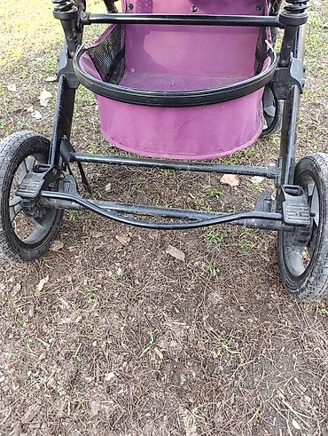 Детская коляска универсальная (люлька + прогулочный блок) Срочно продаем уезжаем - Шасси: прочная рама, ручка с шарнирами для регулировки наклона, передние поворотные колёса, задняя ось с тормозо...
