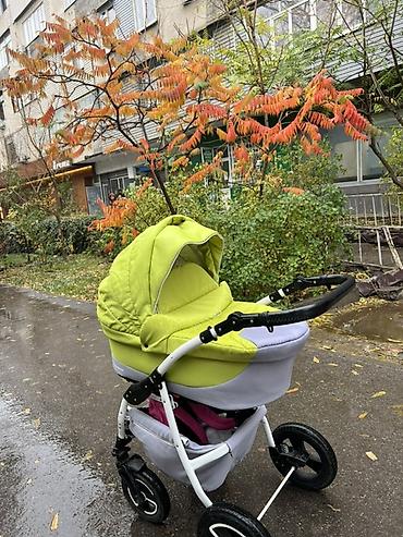 Универсальная детская коляска 2-в-1 с люлькой и прогулочным блоком. Состояние хорошая Основные особенности: - Рама из алюминия золотистого цвета, компактное сложение, удобная переноска за ручку. ...