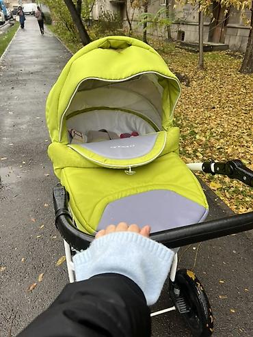 Детская коляска-люлька с прогулочным шасси Б/у - Тип: коляска 2-в-1 (люлька на шасси, возможна установка прогулочного блока при наличии) - Люлька: глубокая, жесткое дно, высокий капюшон. Ткань стег...
