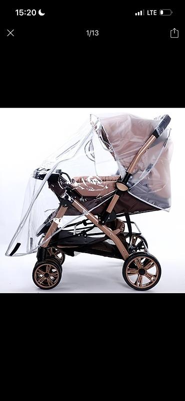 - Дождевик: прозрачный, закрывает коляску полностью от дождя и ветра (входит в комплект на фото)