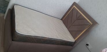 Односпальная кровать с матрасом. - Конструкция: деревянное основание, снизу усилена металлическим каркасом и плитой ДСП толщиной 18 мм. - Выдерживаемая нагрузка: до 150 кг и выше. - Подходит для д...