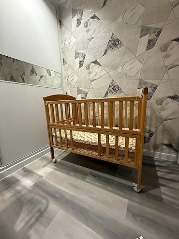 Детская приставная кроватка, С колесиками, цвет - Бежевый