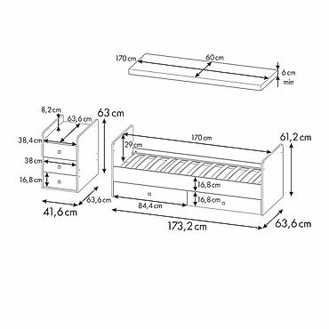 - Общая длина основания кровати: 173,2 см.
