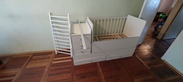 Детская кровать-трансформер с комодом и выдвижными ящиками, матрас в подарок.