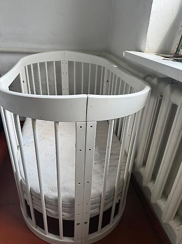 Детская кроватка-трансформер овальной формы с матрасом. Первая длина: 82х60 Вторая длина: 120х60 Особенности: - Овальный дизайн с закругленными углами — безопасно и удобно располагать в комнате. - ...