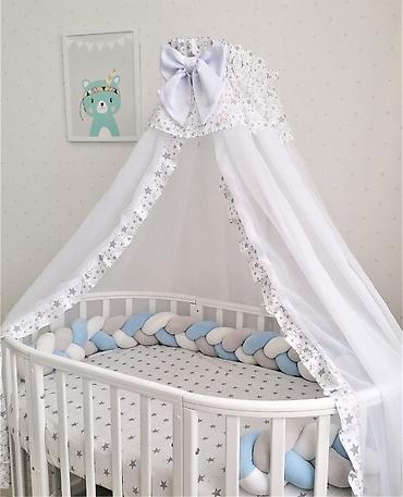 Детская кроватка с комплектом текстиля и балдахином Колеса качалка с маятником 7500 сом Маятник с ящиком 8500 сом Матрас 2000-2500 сом Балдахин 1000-2000 сом Держатель 1200 сом Бортик 2000-4000 с...