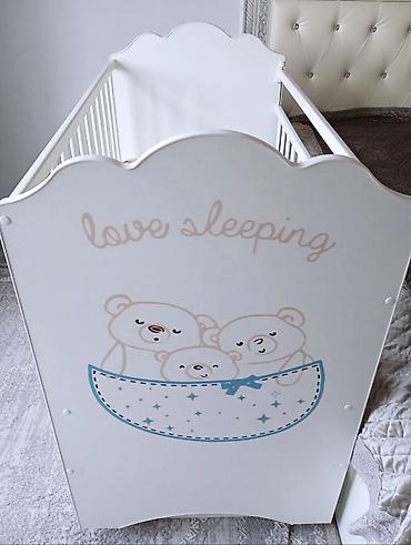 Детская кроватка с рисунком мишек и надписью «love sleeping» -