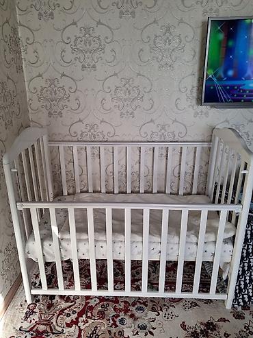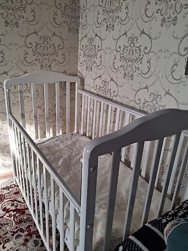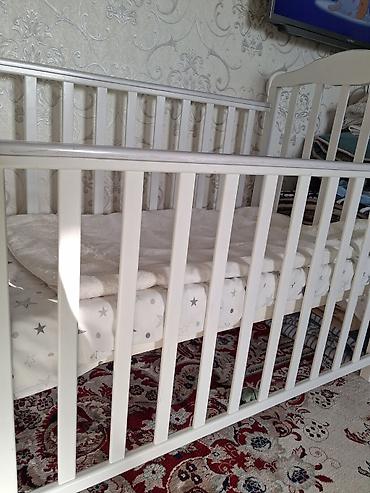 Детская деревянная кроватка, цвет — белый. Особенности: -