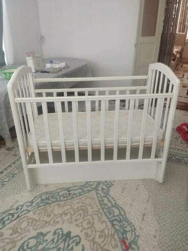 - Классическая деревянная кроватка с реечными боковинами.