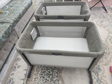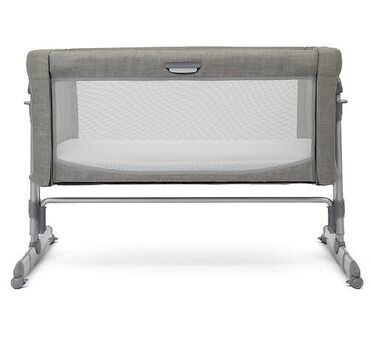 Приставная детская кроватка-люлька серого цвета. Оснащена сетчатыми стенками для лучшей циркуляции воздуха и обзора ребенка. Имеет регулируемую высоту и может быть прикреплена к взрослой кровати для удобства ухода за младенцем. Легкая и компактная конструкция с колесиками обеспечивает мобильность и удобство перемещения по дому.